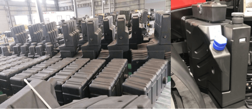我們目前接觸的就有很多,并且產(chǎn)量需求都非常龐大,比如擋泥板,車殼,駕駛臺,尿素罐,液壓油箱,柴油箱,汽油箱,保險杠,進氣管,風(fēng)管......等都可以通過滾塑方式進行定制和量產(chǎn)!